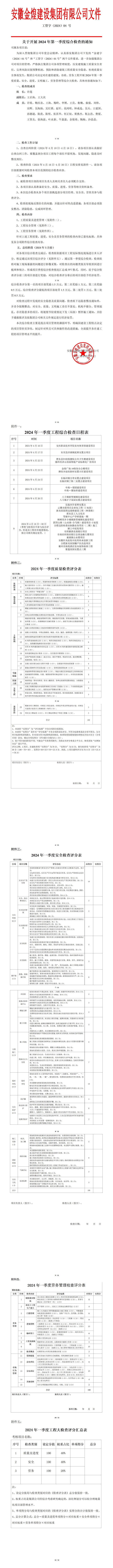 附件一:2024年一季度工程综合检查日程表