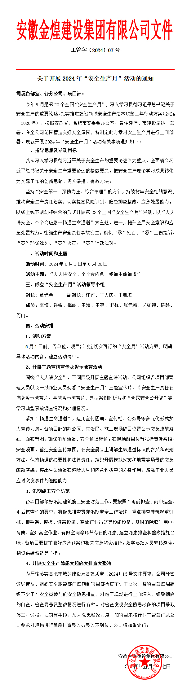 关于开展2024年“安全生产月”活动的通知