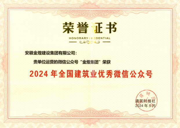 金煌集团荣获2024 年度全国建筑业优秀微信公众号称号