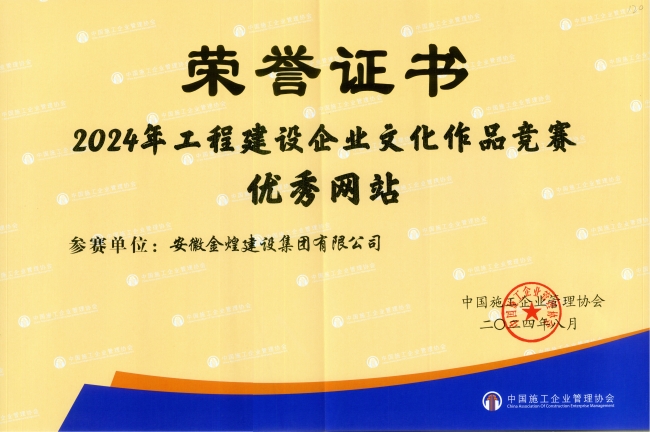 在本次表彰大会中获悉,金煌集团选报的《打造党建+文化引擎 激发企业新质生产力》的企业文化案例脱颖而出,被评为2024年度工程建设企业文化建设优秀案例。同时安徽金煌建设集团企业网站和中皖金煌企业微信公众号被中国施工企业协会评为工程建设企业文化优秀成果奖。