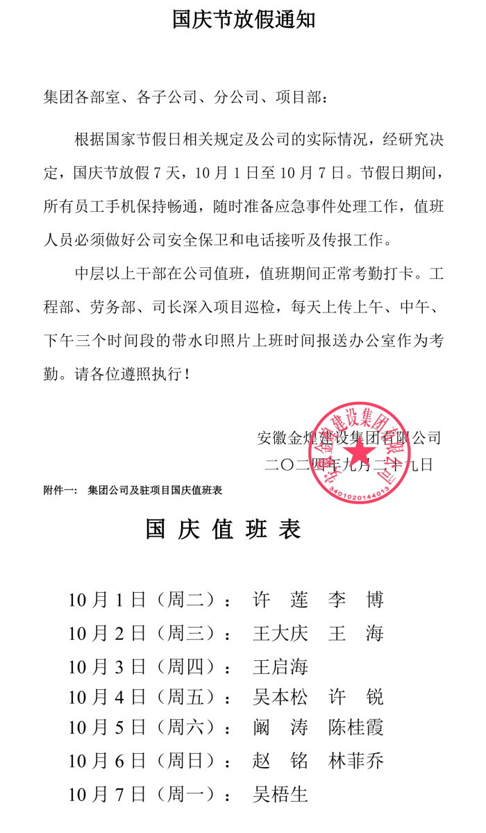 2024年国庆节放假通知