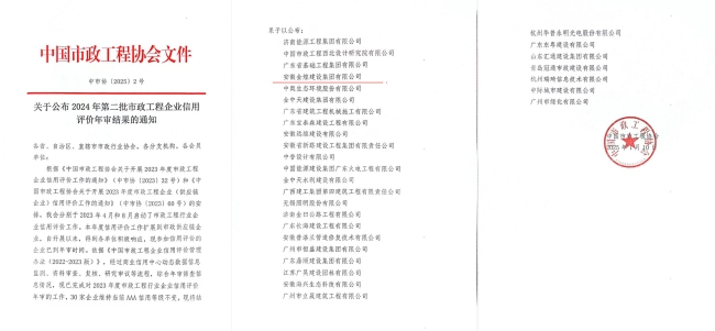近日,从中国市政工程协会发布的“关于公布2024年第二批市政工程企业信用评价年审结果的通知”中获悉,金煌集团在本年度年审中保持中国市政信用AAA信用等级评价。