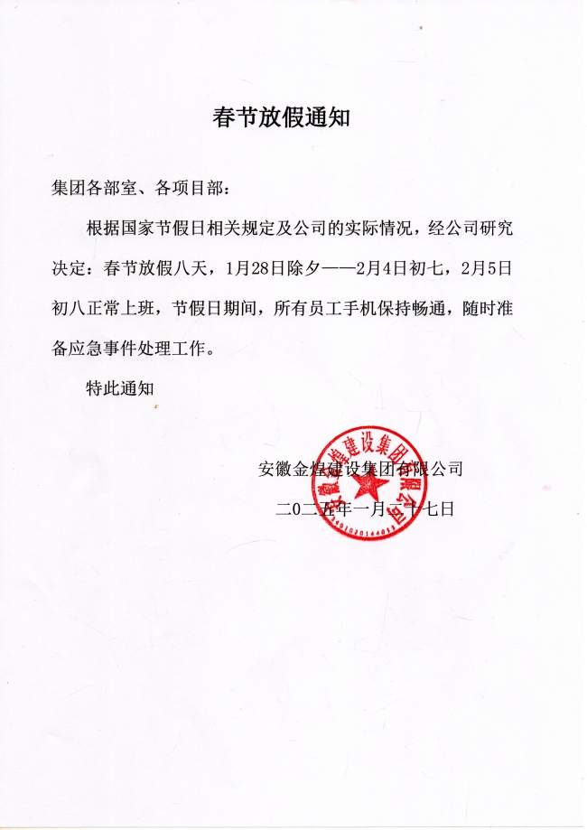 2025年春节放假通知