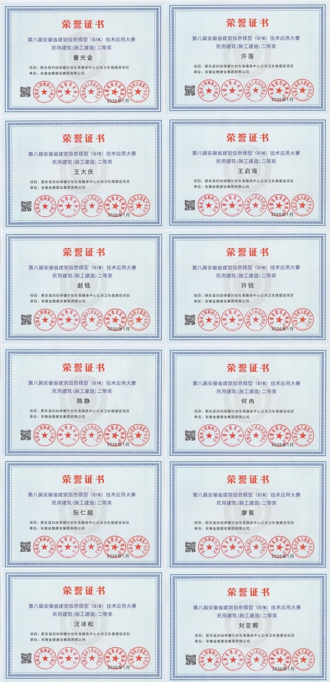 发展新质生产力助推建筑质量高发展,运用BIM技术提升建筑产业数字技术新水平。近期,由安徽省工程勘察设计协会、安徽省建筑业协会等5家协会联合举办的“第八届建筑信息模型(BIM)技术应用大赛”的最终评审结果正式公布。在这场新型数字技术大赛角逐中,金煌集团申报的“肥东县妇幼保健计划生育服务中心公共卫生楼建设项目”运用的BIM技术在此次大赛中荣获二等奖的的优异成绩。这一荣誉彰显了金煌集团在建筑行业创新运用能力的卓越实力。