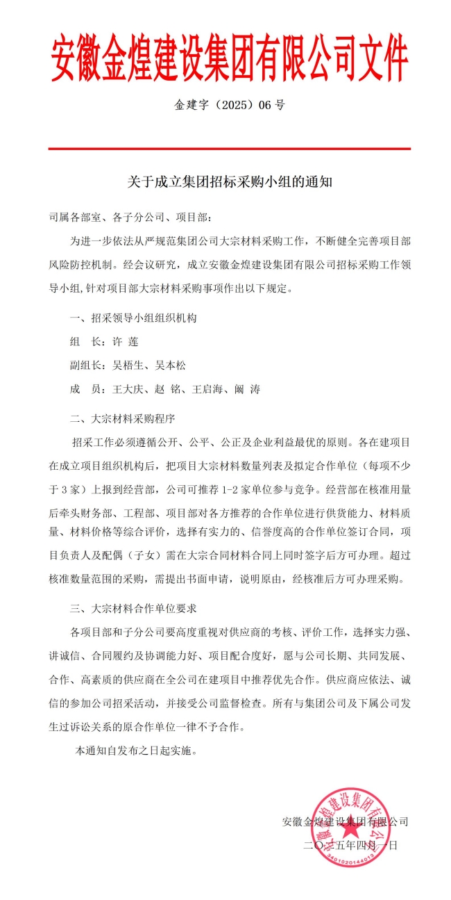 关于成立集团招标采购小组的通知