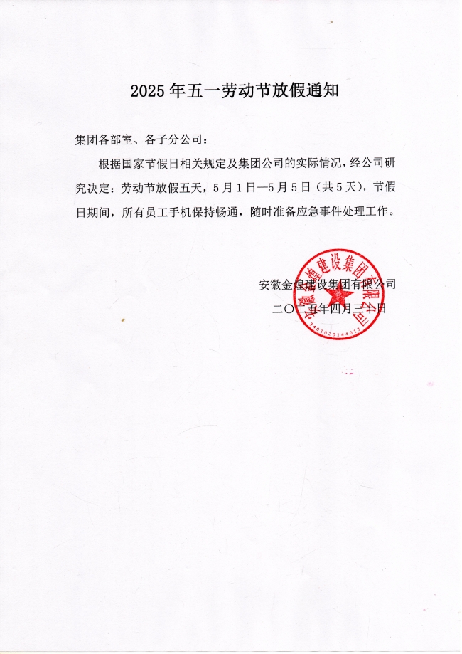 2025年五一劳动节放假通知