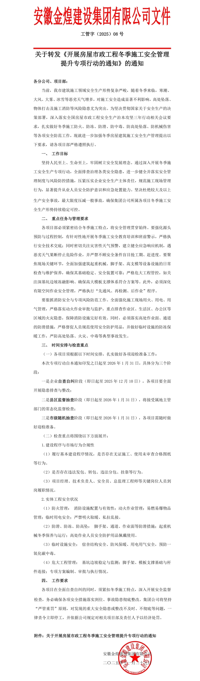 关于转发《开展房屋市政工程冬季施工安全管理 提升专项行动的通知》的通知
