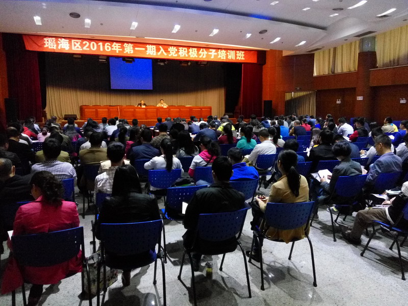 为加强集团党委对入党积极分子的教育培养工作,帮助入党积极分子全面了解党的性质、宗旨、任务,提高理论修养,端正入党动机,树立正确的世界观、人生观、价值观,坚定共产主义信念。中共合肥市瑶海区委党校于2016年4月20日、21日两天,在瑶海区政府三楼大礼堂举办了2016年瑶海区第一期入党积极分子培训班。