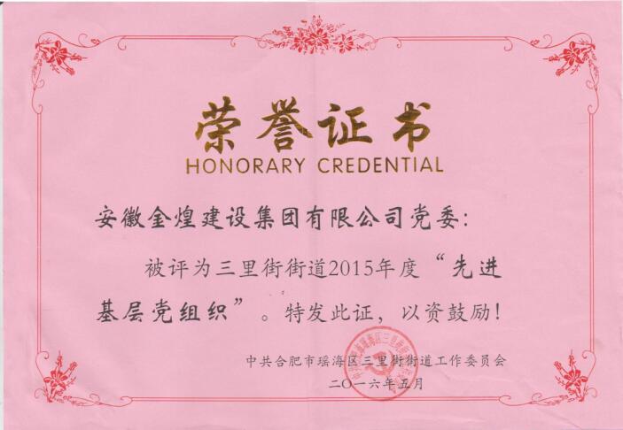 会议表彰了优秀党员、优秀党务工作者和先进基层党组织,安徽金煌建设集团党委再获“先进基层党组织”殊荣,此次取得“先进基层党组织”这项殊荣,是三里街党工委对集团企业党建工作的支持和帮助。