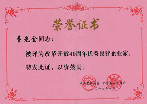金煌集团董事长童光金先生被授予肥东县“优秀民营企业家”称号