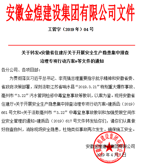 转发«安徽省住建厅关于开展安全生产隐患集中排查治理专项行动方案»等文件的通知