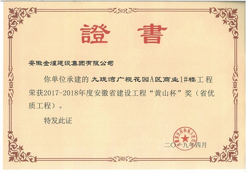 金煌集团荣获2017-2018年度省优工程“黄山杯”奖