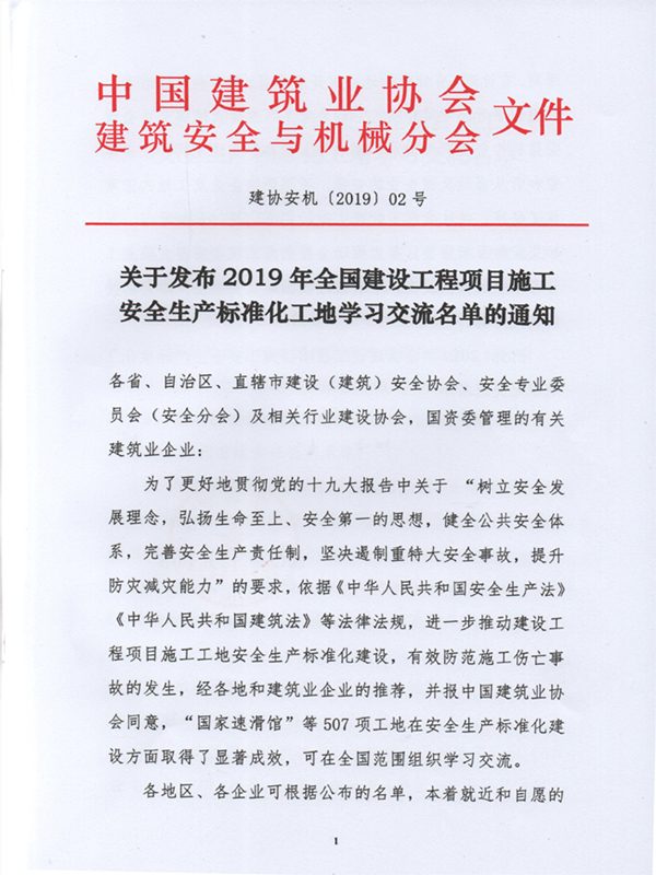 2019年,金煌集团在安全文明施工管理方面,创五项“安徽省建筑安全生产标准化示范工地”称号,两项“全国建设工程项目施工安全生产标准化工地”称号。以上殊荣的获得,将进一步提高项目的标准化管理水平,营造良好的安全生产氛围,为提升企业形象、促进企业健康快速发展奠定坚实的品牌基础。