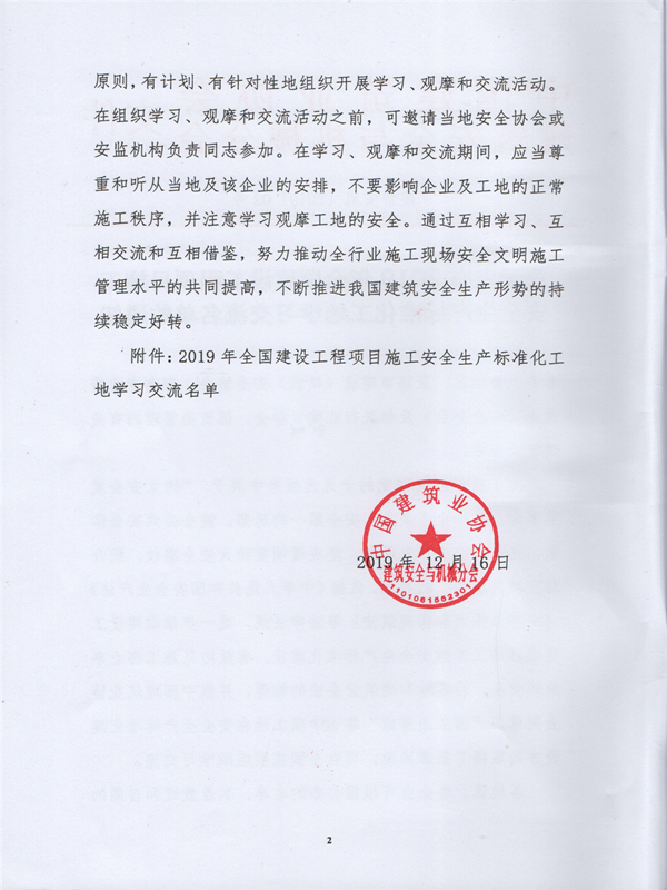日前,从中国建筑业协会建筑安全与机械分会获悉,由安徽金煌建设集团承建的七里塘花园1#—6#楼工程和南翔商务中心4#楼工程荣获2019年度全国建设工程项目施工安全生产标准化工地。这是金煌集团连续三年获得的第四项全国建设工程安全生产标准化工地奖项(原名称为全国安全文明AAA工地)。