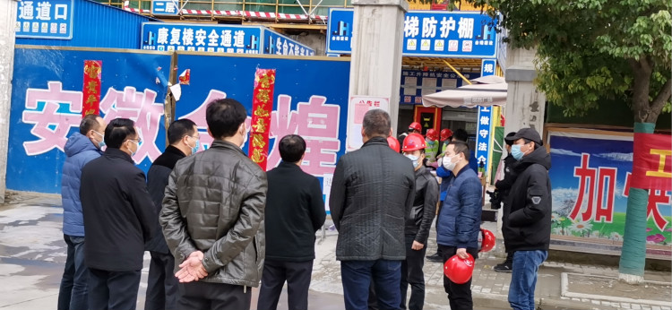在项目施工现场,邓真晓书记指出,在疫情期间项目的复工人员一定按县政府文件要求,逐一落实,尤其本地流动务工人员要做到“两点一线”式工作,严格遵守上下班“两点一线”管理制度,务工人员需本人签订承诺书,按规定进行定位打卡,确保疫情期间每位务工人员的身体健康。在检查过程中,各位领导对安徽华源临泉中心医院项目也给予厚望,希望务工人员能尽早全面到岗复工,保证项目的顺利完成。