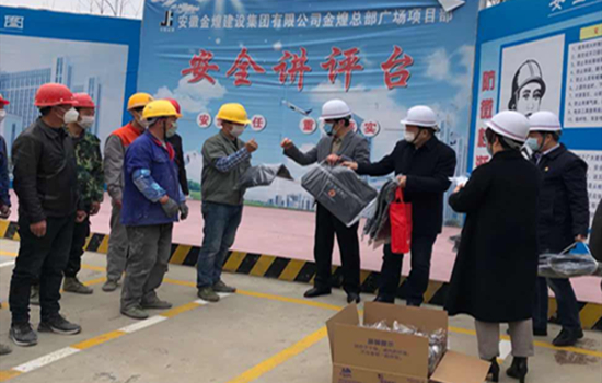 银企结对共建抗疫情,合作共赢同进步。为深化银企双方互信共赢,3月12日下午3时,肥东县农商行城关支行行长王从蓉一行深入金煌总部广场项目部开展慰问,为坚守岗位的一线工作人员送去口罩、行李包、水杯等物资。王从蓉行长代表城关支行对疫情防控期间坚守施工岗位一线、舍小家顾大家的精神表示由衷的敬意,对参建员工为工程建设所做的付出和贡献表示感谢,并提醒大家一定要做好防护措施,时刻牢记安全第一,让在场的每一位项目部工作人员深切感受到肥东农商行带来的温暖。