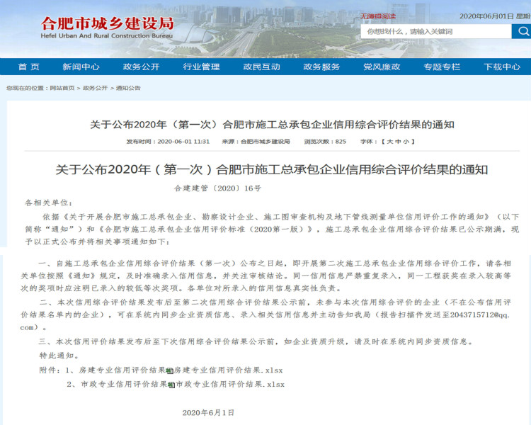 合肥市施工总承包企业信用综合评价标准是从资质等级、在肥纳税额、走出去发展、政府主管部门及行业协会表彰、科技创新、优质工程、标准化工地、通报表扬、行政处罚、通报批评、停工、约谈、其他不良行为等十三个方面做出考核。其中良好信用是通过企业申报,主管单位审核的方式,不良行为由主管单位提取的方式作出综合评价。