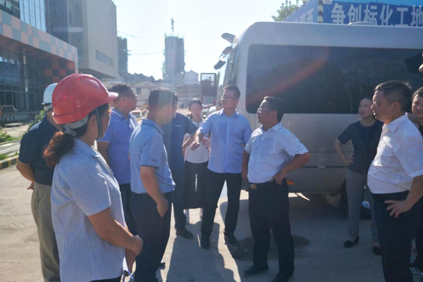 2020年8月13日下午15时,肥西县李煜县长等领导莅临安徽金煌建设集团有限公司承建的肥西县全民健身中心项目调研。县教体局、县重点工程中心等相关负责人陪同。