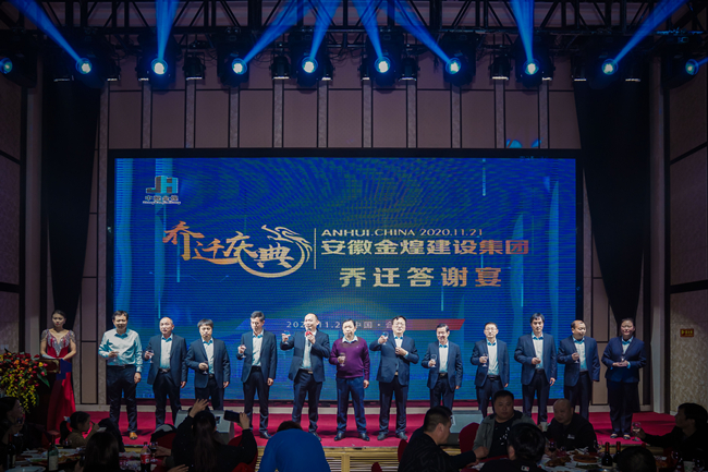乔迁答谢宴,高朋满座。金煌集团总经理吴永华致答谢词,他再次感谢社会各界在过去的时间里对金煌集团发展的支持与鼓励,我们将以此为契机,励精图治,不断创新,铸造更多的精品工程汇报社会。随后,董事长童光金先生带领集团核心团队一起登台向各位来宾敬酒,让我们共同举起相聚的酒杯,为了我们长久的友谊,更为了开辟事业的新天地,干杯!此刻,将答谢宴的欢乐气氛推向了高潮。