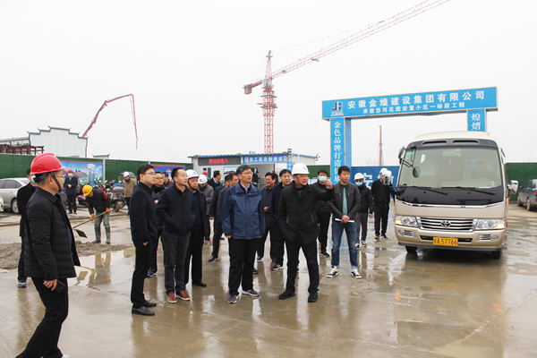2月5日上午9时,肥东县委书记孙良鸿一行调研安徽金煌建设集团承建的岱河花园一标段项目。陪同调研的领导有副县长王伟程、县发改委主任王汝辉、县重点局局长杨成忠、县建设局局长殷传才、县财政局局长陈桂玲。各方责任主体单位的相关人员陪同调研。