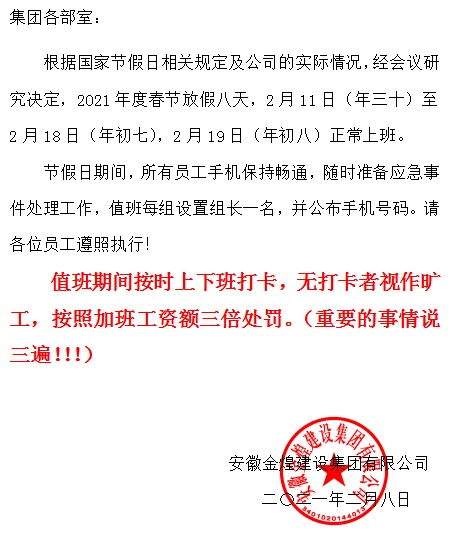 2021年度春节放假通知