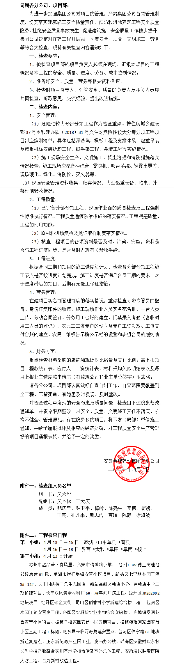 关于开展2021年第一季度综合大检查的通知