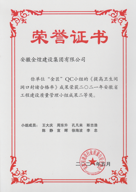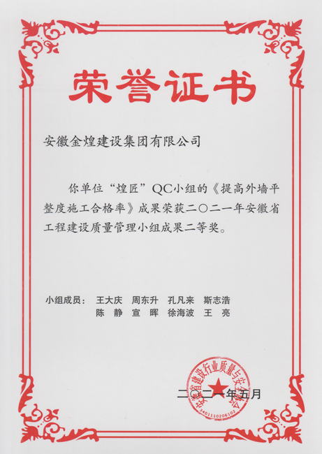 近年来,安徽金煌建设集团高度重视科技创新和质量管理各项工作,不断加强全员全过程质量管理,注重与优秀企业间的对标交流学习,项目部间也形成了“比学赶超”的活动氛围,多次在省部级科学技术成果评比交流中取得佳绩。