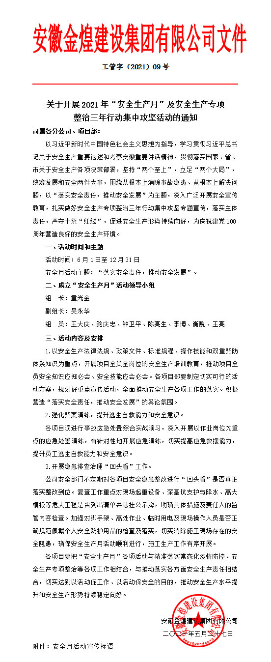 关于开展2021年“安全生产月”及安全生产专项整治三年行动集中攻坚活动的通知