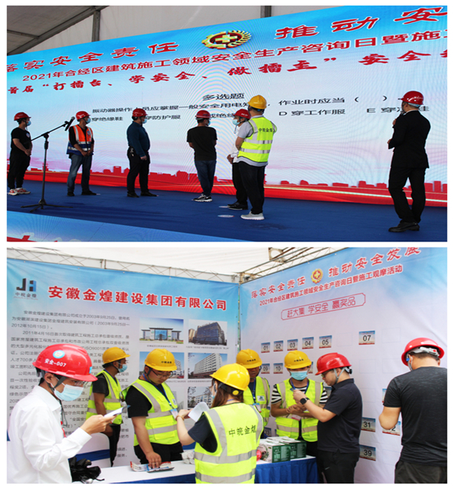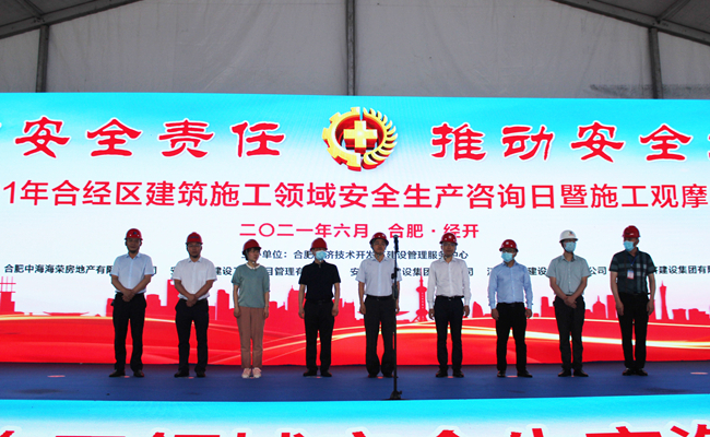 为全面贯彻落实习近平总书记关于安全生产的重要论述和安徽省安全生产工作的重要批示精神,进一步强化建筑施工领域安全生产意识。6月16日上午,合经区建筑施工领域安全生产咨询日暨施工观摩活动在经开区JK202002号地块项目拉开帷幕,出席启动仪式的领导有:合经区应急管理局局长甄长玉、合经区建设管理服务中心主任张红环、合经区建设管理服务中心副主任惠稳善、合经区建设管理服务中心质量安全监督站站长孙丽娟,建设单位、施工单位等其它项目代表团300多人汇聚一堂。本次安全观摩活动由合肥经济技术开发区建设管理服务中心主办,安徽金煌、安徽同济、江苏坤龙三家施工企业共同协办。