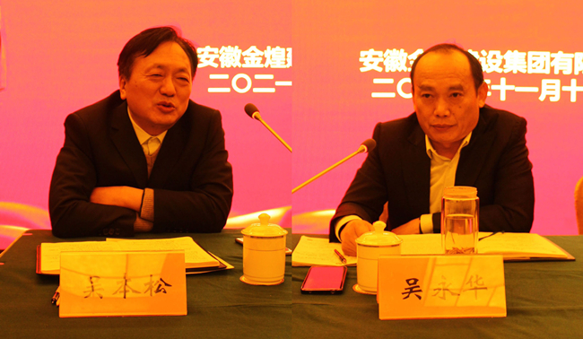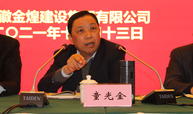 2021年度金煌集团工作会议于11月13日下午15时在安徽水利和顺酒店顺利召开,参加会议人员有集团相关部室负责人、各在建项目部负责人约80多人,会议严格按照当前疫情防控的要求,隔空设坐,对会场进行消毒等措施。会议由集团公司总经理吴永华同志主持。