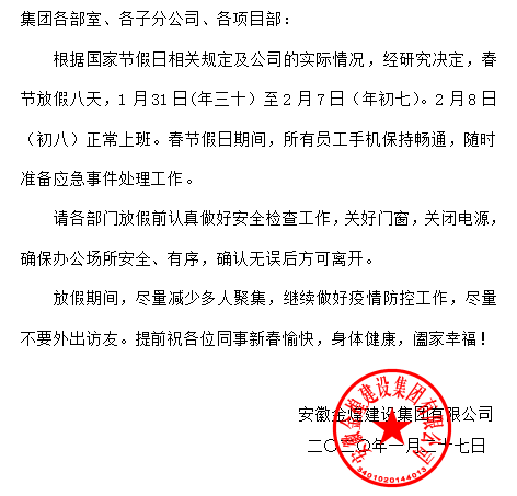 2022年度春节放假通知