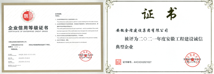 金煌集团喜获“2021年度安徽工程建设诚信典型企业” 多项荣誉称号