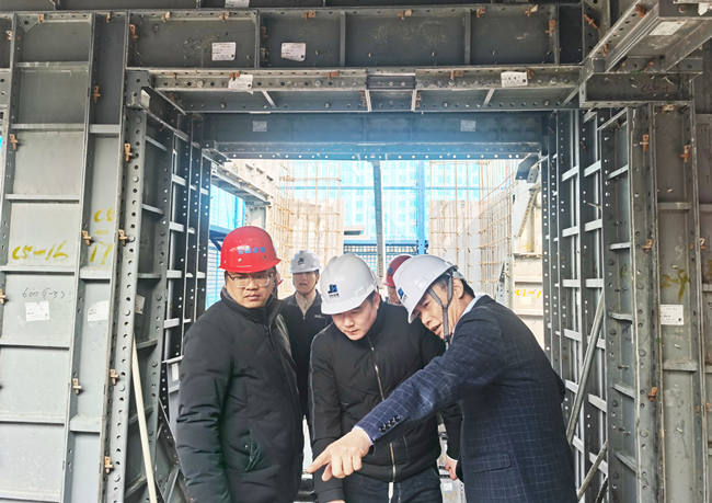 为加大建设工程新技术的推广应用,推动建筑施工企业的稳步提升,提高金煌集团工程品质,3月5日上午,安徽金煌建设集团有限公司总经理吴永华带领集团工程部管理人员前往包河区休宁路片区BF地块拆迁复建点项目对爬架提升和铝模应用等施工技术进行现场观摩学习。