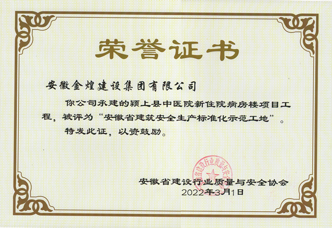 金煌集团两项目荣获“安徽省建筑安全生产标准化示范工地”荣誉称号