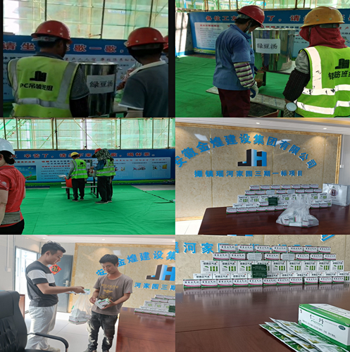 为了应对高温天气,各在建项目部积极为工人们防暑降温,不仅调整了施工时间,还定期发放防暑降温物品,保障一线工作者的人身安全。休宁路BF地块项目负责人陈玉军说:“7月到9月份是一个高温天气,在保证安全的前提下,我们7月份制定了夏季施工注意事项。每天给工人发水,宿舍里都安装了空调,给他们下放防暑用品,避开上班高温期。”