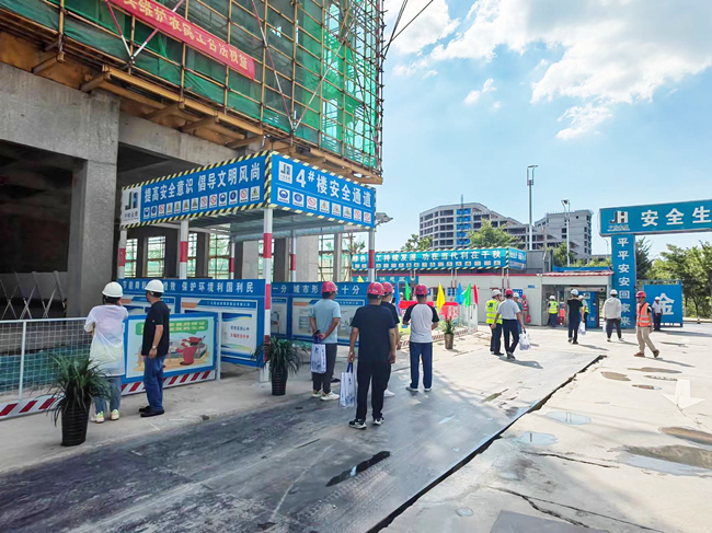 为提高建筑工程质量、文明施工及安全管理水平,持续推进质量、安全标准化建设,更好的发挥标杆工地的示范引领作用。应合肥经济技术开发区建设管理服务中心要求,金煌集团精心策划组织的硕金大街项目质量安全观摩会于8月5日下午3:00顺利举行。项目部严格按照疫情防控措施的要求,来自经开区各在建项目建设、施工、监理单位负责人及金煌集团合肥在建项目负责人共100余人分批次进入施工现场参加本次观摩交流活动。