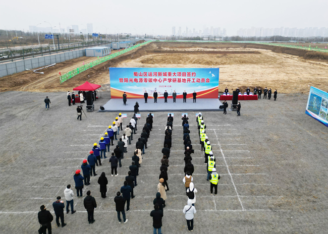 百业齐兴图崛起,万众一心谋发展。12月16日上午9点08分,在一派祥和的氛围中,蜀山区运河新城重大项目签约暨阳光电源零碳中心产学研基地开工动员会隆重举行,安徽省委常委合肥市市委书记虞爱华宣布项目正式开工。阳光电源股份有限公司董事长曹仁贤、安徽省生态环境厅党组书记厅长曹哨兵、中国科学院合肥物质科学研究院院长刘建国、合肥市人民政府副市长何逢阳、蜀山区委书记王海霞、阳光电源副董事长赵为、施工、监理单位等相关领导共同见证这一荣耀时刻。