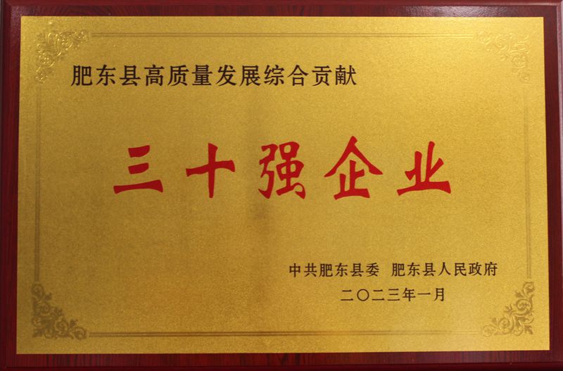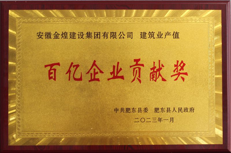 会议表彰了《中共肥东县委、肥东县人 民政府关于表彰肥东县高质量发展综合贡献 30 强企业的决定》、《中共肥东县委、肥东县人民政府关于表彰肥东县经济高质量发展工作先进单位和先进个人的决定》,并对受表彰单位和个人进行了颁奖。金煌集团喜获肥东县县委和肥东县人民政府授予的建筑业产值百亿企业贡献奖和高质量发展贡献三十强企业。