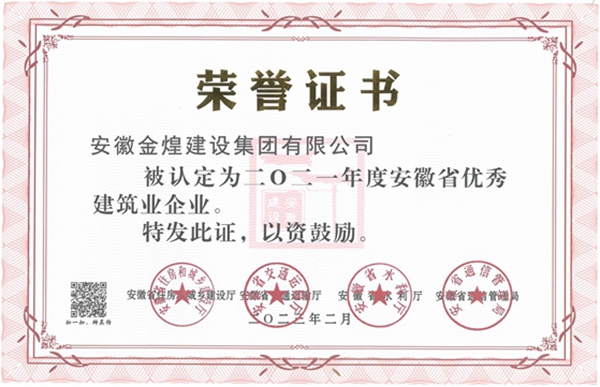 鸿鹄高飞,一举千里。近日,安徽省住房和城乡建设厅发布的《关于公布2021年度安徽省优秀建筑业企业名单的通知》中,金煌集团蝉联榜单,荣获二0二一年度安徽省优秀建筑业企业称号。