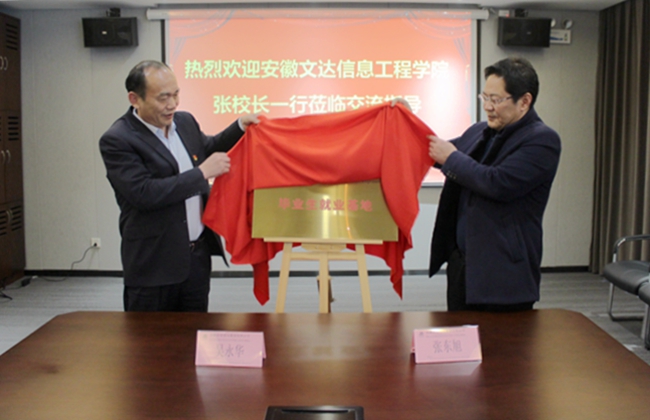 座谈会后,张东旭副校长和吴永华总经理共同为毕业生就业基地揭牌,这标志着校企双方的战略合作关系向更深层次方向推进。实现了校企互利与共向双赢,充分体现了校企联合的发展模式,有利于金煌集团选聘、吸引更多优秀毕业生到企业就业,提高企业的核心竞争力,促进企业长远发展,同时也为文达学院的学生提供了更多的就业、创业、实践和研究平台。