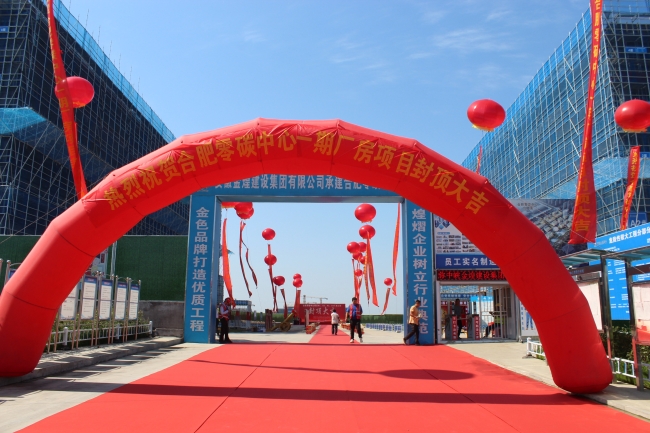 匠心倾注筑金顶,平安合龙得万福。金煌集团承建的合肥零碳中心一期项目主体结构封顶仪式于6月9日上午10:18举行,五方责任单位负责人共同见证这一喜庆时刻。金煌集团党委书记、董事长童光金先生受邀参加封顶仪式。合肥蜀山经济开发区党工委委员、管委会副主任邓杰义宣布封顶仪式正式开始。