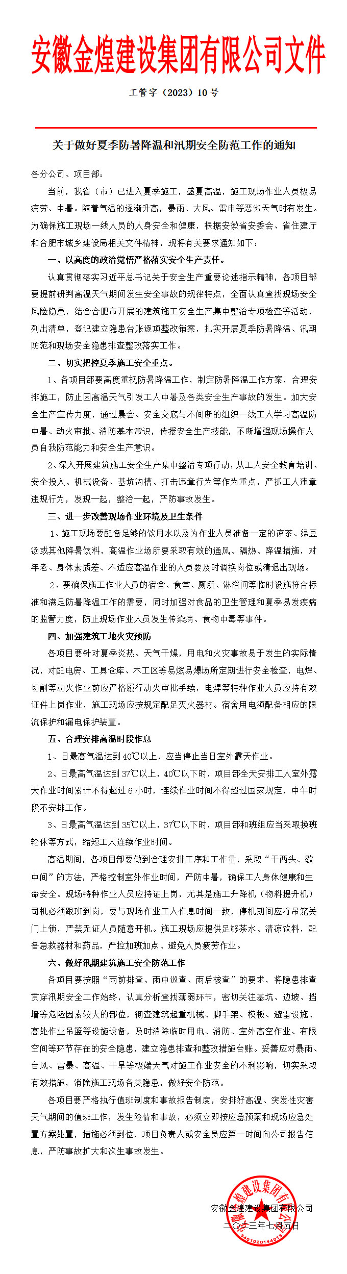关于做好夏季防暑降温和汛期安全防范工作的通知