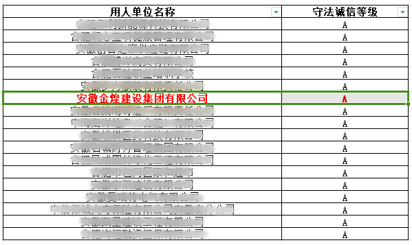 为进一步提高用人单位守法诚信意识,促进用人单位依法用工,构建和谐稳定的劳动关系,切实维护劳动者合法权益,市人社局根据《劳动保障监察条例》《保障农民工工资支付条例》和《关于开展2023年劳动保障书面审查和诚信等级评价工作的通知》文件要求,通过各县市区对辖区内企业日常巡查检查、书面材料审查以及专项检查等劳动保障监察结果,金煌集团继续保持合肥市2023年劳动保障守法诚信A级单位。
