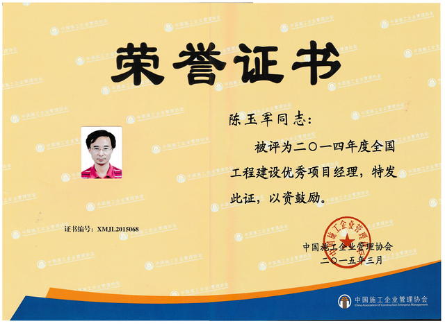 陈玉军2014全国优秀项目经理