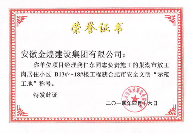 获得2014年度省级工法(带耳片的钢质花管注浆抗拔管施工)